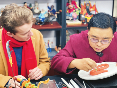 中國年的味道離不開非遺的加持,龍年春節(jié),新鮮有趣的非遺故事讓更多外國人喜歡上非遺大省山西。春節(jié)期間,山西衛(wèi)視融媒體推出“全世界愛過中國年”特別策劃,邀請7位來自世界各地的“非遺體驗官”到山西拜師學藝體驗年俗,在山西多樣的非遺年俗里“遺”起過龍年。圍著大紅圍巾的英國小伙Rees跟著省級非遺傳承人衛(wèi)興安學習浮山面塑,聽說面塑是面做的,拿起就要咬一口,可愛又好笑;屬龍的南非姑娘陳諾第一次了解本命年,并獲得絳州木版年畫省級非遺傳承人吳百鎖贈與的新年禮物——拓印“龍”年畫;以“過年期間吃遍山西美食”為目標的巴基斯坦女孩代妮婭在太原工藝美術大師孟艷萍指導下一氣呵成完成糖畫制作,不愧是個“小吃貨”……7位“非遺體驗官”紛紛表白對山西非遺的熱愛,還有什么比外國人自己的親身經(jīng)歷更有說服力、感染力呢?山西衛(wèi)視該節(jié)目制作團隊相關負責人楊雅菲說:“我們希望通過外國人的視角,為世界送上一場熱鬧喜慶的中國非遺文化盛宴。”