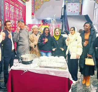 “我在山西過大年”,2月23日,正月十四,省對外友協(xié)組織30余名在晉留學生來到清徐,參加元宵節(jié)民俗體驗活動,看社火、賞非遺、滾元宵、了解老陳醋和葡萄酒文化,留學生們被中國元宵節(jié)的紅火熱鬧氣氛深深感染。來自巴基斯坦的留學生yahya告訴記者:“太有趣了,這是我第一次感受中國的元宵節(jié),和來自不同國家、文化背景的同學們一起慶祝,是我人生中美好的回憶?!睘樽屃魧W生沉浸式體驗中國年,省內(nèi)高校各顯神通,或贈送春節(jié)吉祥物、燈籠、年畫等;或組織“筆墨凝書香,春聯(lián)進萬家”手寫春聯(lián)活動;或開展“留學生中國家庭春節(jié)”體驗日,邀請留學生在中國教師家中吃團圓飯,學習剪窗花、做花燈、包餃子,感受中華傳統(tǒng)年文化和家文化魅力。山西醫(yī)科大學國際教育學院院長樊清華說:“在教授好專業(yè)知識的同時,我們要為留學生提供更多了解中國經(jīng)濟社會發(fā)展、中華歷史文化的平臺和機會,通過親身參與春節(jié)文化活動可以幫助他們感知山西、了解中國、讀懂中國。”