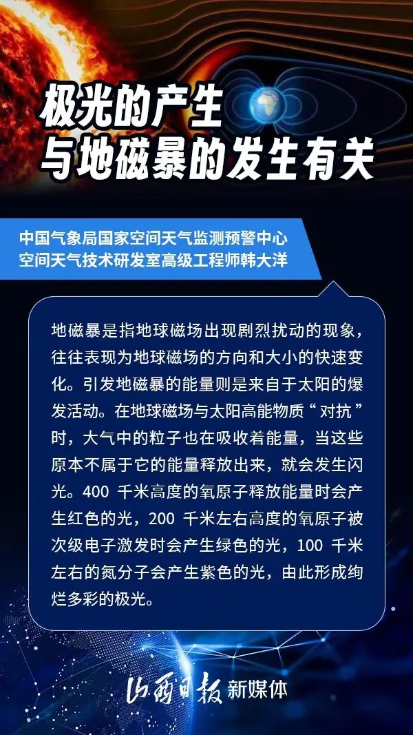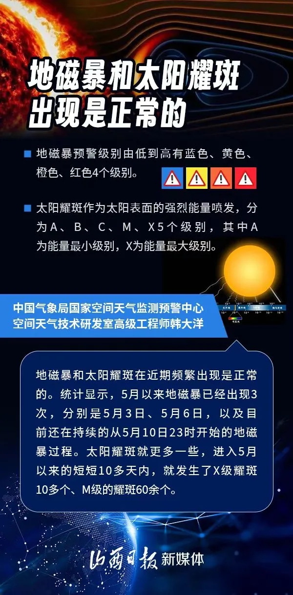 近日,我國(guó)多地出現(xiàn)極光現(xiàn)象,引起人們廣泛關(guān)注。極光現(xiàn)象與地磁暴活動(dòng)密切相關(guān)。地磁暴以及近期頻繁出現(xiàn)的太陽(yáng)耀斑為什么發(fā)生?對(duì)人們的生活有影響嗎?下面一起來(lái)看專家解讀。