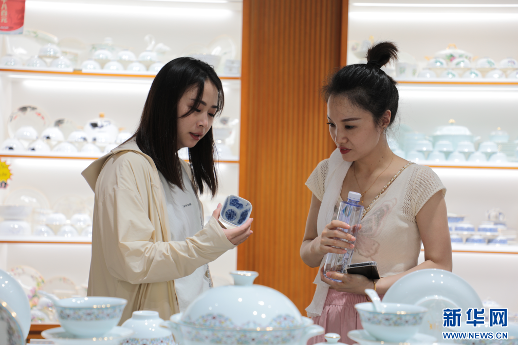 游客在欣賞各式瓷器。新華網(wǎng)發(fā)