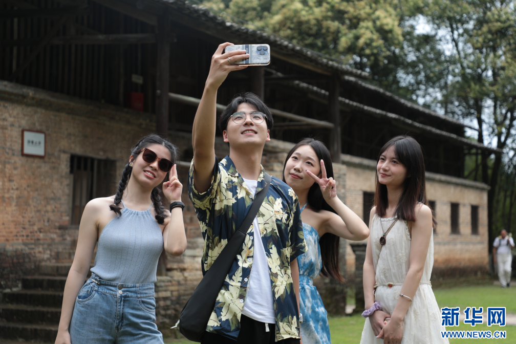 年輕游客在景德鎮(zhèn)古窯民俗博覽區(qū)參觀拍照。新華網(wǎng)發(fā)