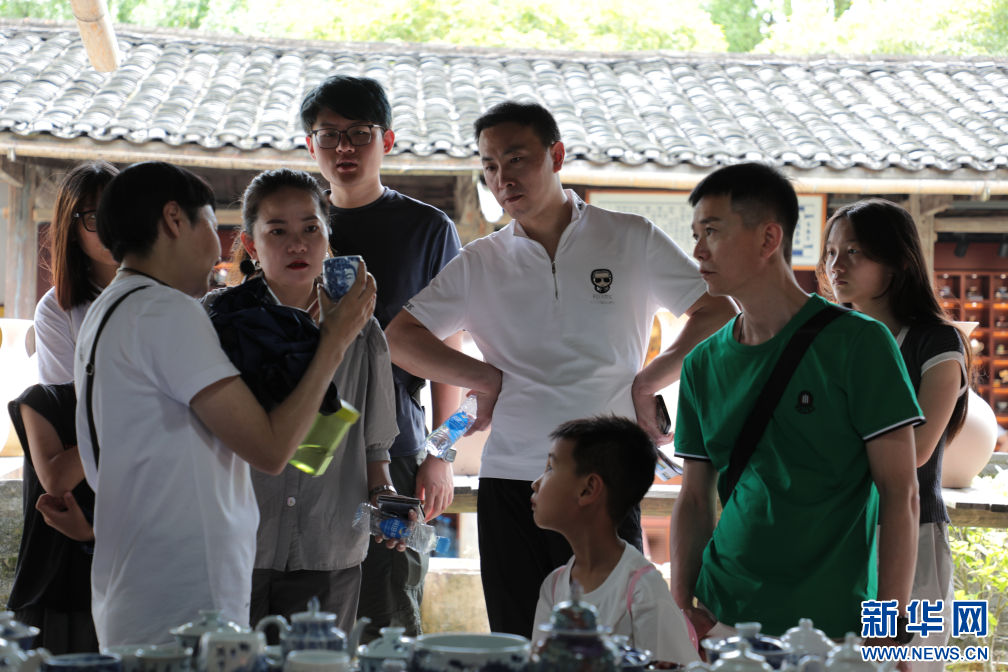 景區(qū)工作人員向游客介紹陶瓷作品。新華網(wǎng)發(fā)