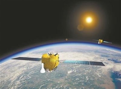 第五十九、六十顆北斗導(dǎo)航衛(wèi)星在軌示意圖。中國科學(xué)院供圖