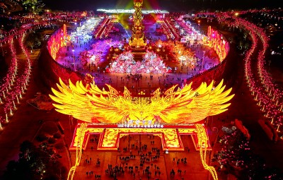 在上海,備受期待的豫園燈會(huì)已經(jīng)亮燈啟幕。伴著夜色步入豫園,古老的飛檐亭臺(tái)與璀璨的花燈交相輝映?!斑@里的奇獸異鳥造型新奇又震撼,我們就如同漫步于一個(gè)奇幻世界中?!苯K無(wú)錫的游客李進(jìn)深有感觸。