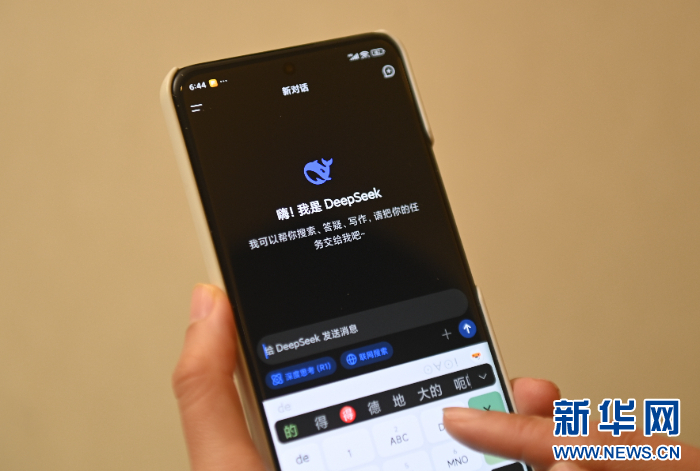 用戶在DeepSeek手機(jī)客戶端上提問。新華社記者 黃宗治 攝