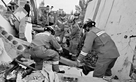 就在這時(shí),支隊(duì)全勤指揮部與增援的武鄉(xiāng)和平路消防站力量到場(chǎng),迅速投入到救援中。6時(shí)49分,救援人員發(fā)現(xiàn)一名兒童的埋壓之地?!安灰ε拢瑘?jiān)持?。 本仍藛T不斷向被困兒童喊話溝通,讓其保持清醒,并迅速利用機(jī)動(dòng)鏈鋸將預(yù)制板破拆,將上方的磚塊等雜物清除出來(lái),被埋兒童成功獲救。7時(shí)55分,通過(guò)消防救援人員的不斷搜尋和手刨,在離被救兒童不遠(yuǎn)處,1名婦女和1名男子被救出(經(jīng)現(xiàn)場(chǎng)醫(yī)務(wù)人員確認(rèn),已無(wú)生命特征)。至此,3名被困人員被全部救出,其中兩人死亡、一人受傷,現(xiàn)場(chǎng)移交公安部門。