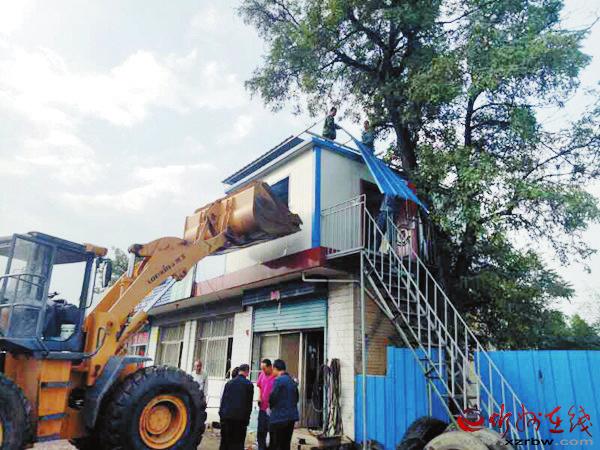 圖為文筆鎮(zhèn)正在拆除違建。