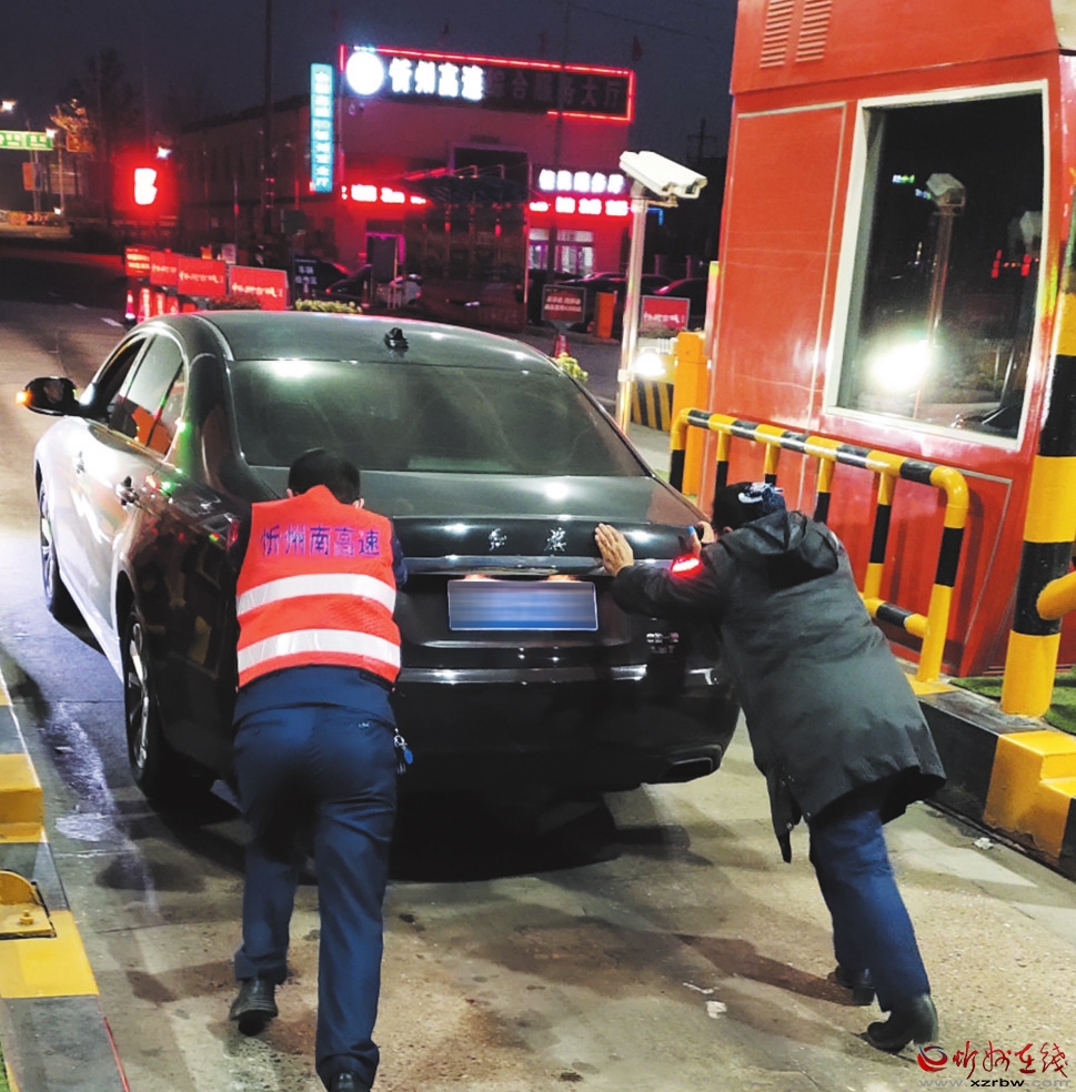 1月3日,南高速忻州收費(fèi)站出口駛?cè)胍惠v黑色紅旗小客車,在起步離開(kāi)時(shí)車輛突發(fā)故障無(wú)法正常駛出車道。值班班長(zhǎng)得知后在安慰司乘人員情緒的同時(shí),立即組織工作人員一起將車推出收費(fèi)車道停放至安全區(qū)域,并擺放好隔離墩,防止事故發(fā)生,同時(shí)積極為司機(jī)聯(lián)系附近修理廠,安排維修人員前來(lái)維修。( 李瑞軍 莊新華 攝影報(bào)道)