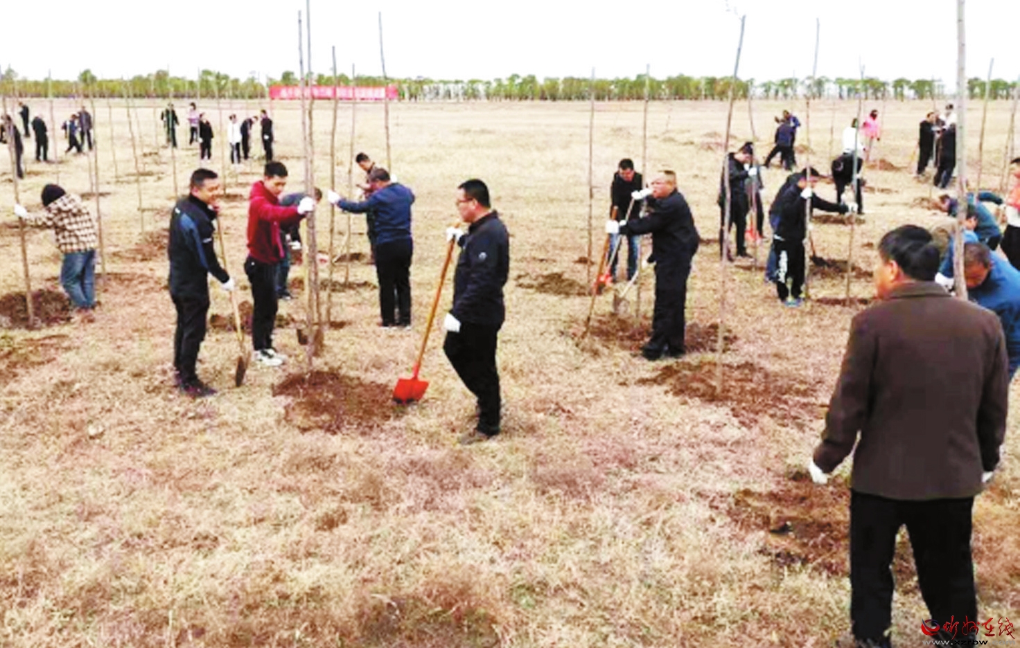 4月13日上午,市生態(tài)環(huán)境局定襄分局在滹沱河定襄縣受祿鄉(xiāng)段開展義務(wù)植樹活動。植樹現(xiàn)場,大家分工協(xié)作,揮鍬挖坑、扶苗澆水,共植樹百余株。該分局還在現(xiàn)場懸掛“積極開展高速沿線環(huán)境綜合整治 持續(xù)改善全縣生態(tài)環(huán)境質(zhì)量”的宣傳標(biāo)語,營造生態(tài)環(huán)境保護工作良好氛圍。(本報記者 張劍雄 攝)