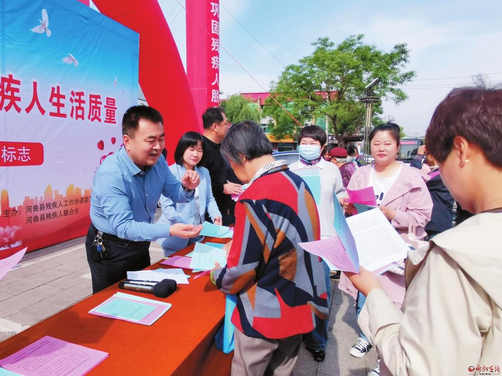 5月16日是第三十一次全國(guó)助殘日,這天,河曲縣在縣政府門(mén)前組織開(kāi)展惠殘政策及殘疾預(yù)防知識(shí)宣傳等系列主題活動(dòng)。 (尹海青 攝)