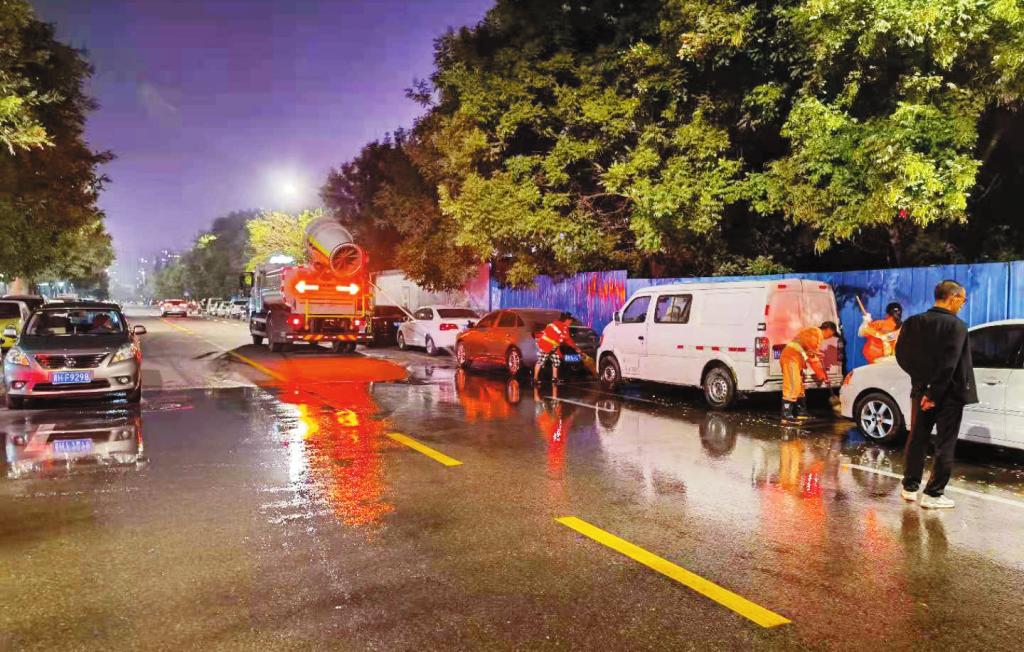 為進(jìn)一步美化城區(qū)環(huán)境,全面提高路面潔凈度,9月12日晚,市環(huán)衛(wèi)服務(wù)中心組織環(huán)衛(wèi)工人、環(huán)衛(wèi)高壓沖洗車,對(duì)和平街便民市場所在的安全巷進(jìn)行道路大清洗行動(dòng)。