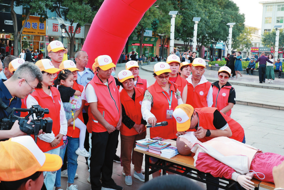 活動(dòng)現(xiàn)場,志愿者為市民講解急救知識(shí),發(fā)放關(guān)于消防安全和急救方法的書籍、手冊(cè),同時(shí)對(duì)心肺復(fù)蘇和手臂骨折、頭部、胸部以及大腿包扎、頸椎骨折等進(jìn)行現(xiàn)場處理,同時(shí)對(duì)搬運(yùn)護(hù)送原則及方法進(jìn)行講解、演示。