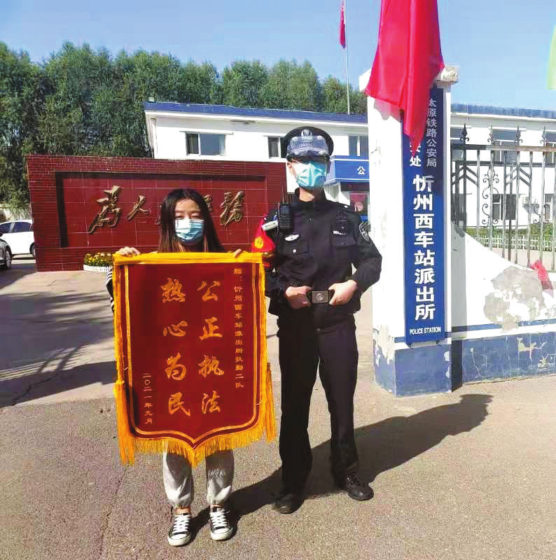 近日,大學生廖某乘坐出租車到忻州西站,下車時不慎將手機落在車上,因多次回撥無人接聽,廖某十分著急,連忙到忻州西站派出所客運執(zhí)勤室向民警求助。值班民警根據(jù)廖某提供的車牌信息,查詢到該出租車司機的手機號,最終將手機找到。手機失而復得,廖某臉上露出了感激的笑容,為表示感謝,幾天后她將一面“公正執(zhí)法 熱心為民”的錦旗送到忻州西站派出所。民警們熱心為民的暖心事跡也在周邊迅速傳開。(實習生 許寧寧 攝影報道)