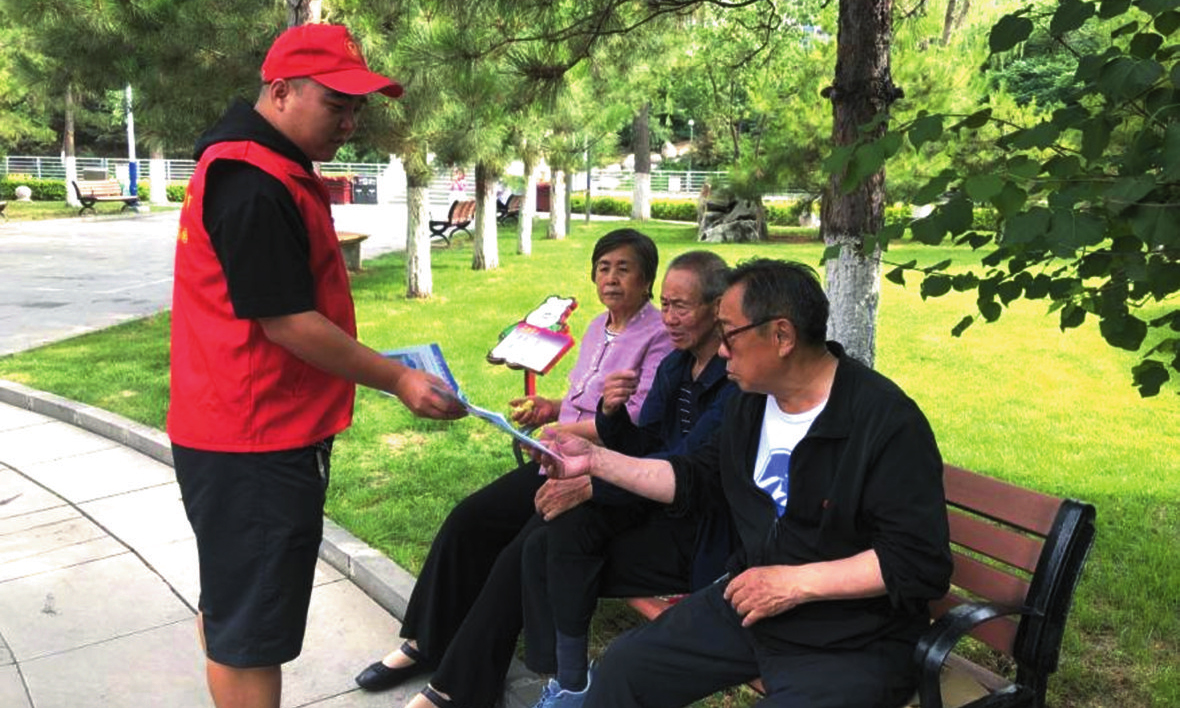 志愿服務者走進社區(qū)進行志愿服務活動