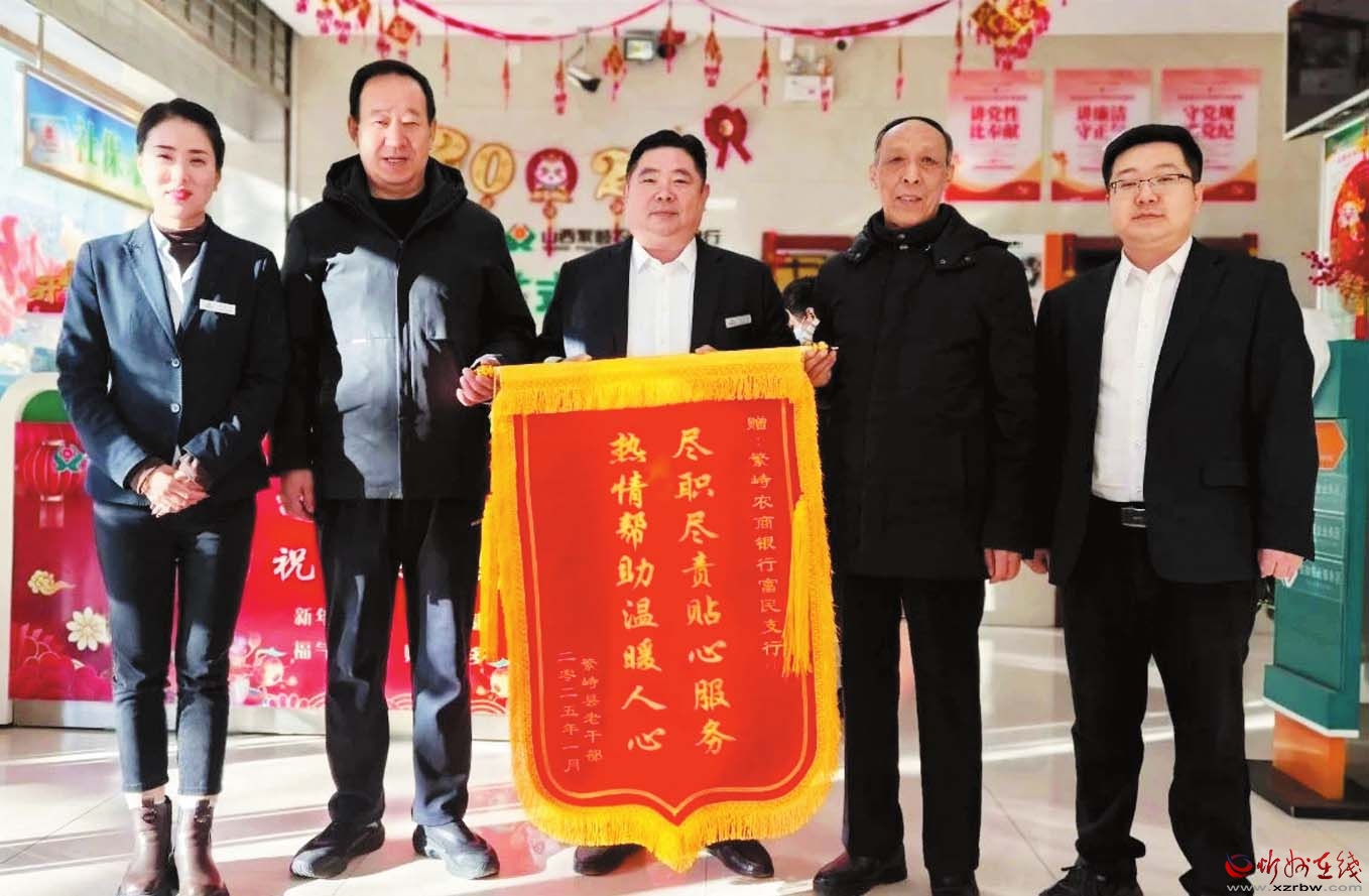 “咱農(nóng)商銀行的服務(wù)真是太好了!”近日,一位老干部將一面寫有“盡職盡責(zé)貼心服務(wù) 熱情幫助溫暖人心”的錦旗,送到了繁峙農(nóng)商銀行富民支行。在首季“開門紅”期間,該行工作人員以專業(yè)的素養(yǎng)和熱情的態(tài)度,為客戶提供了暖心服務(wù),贏得了客戶的好評(píng),樹立了農(nóng)商行的良好社會(huì)形象。(郭凱文攝)