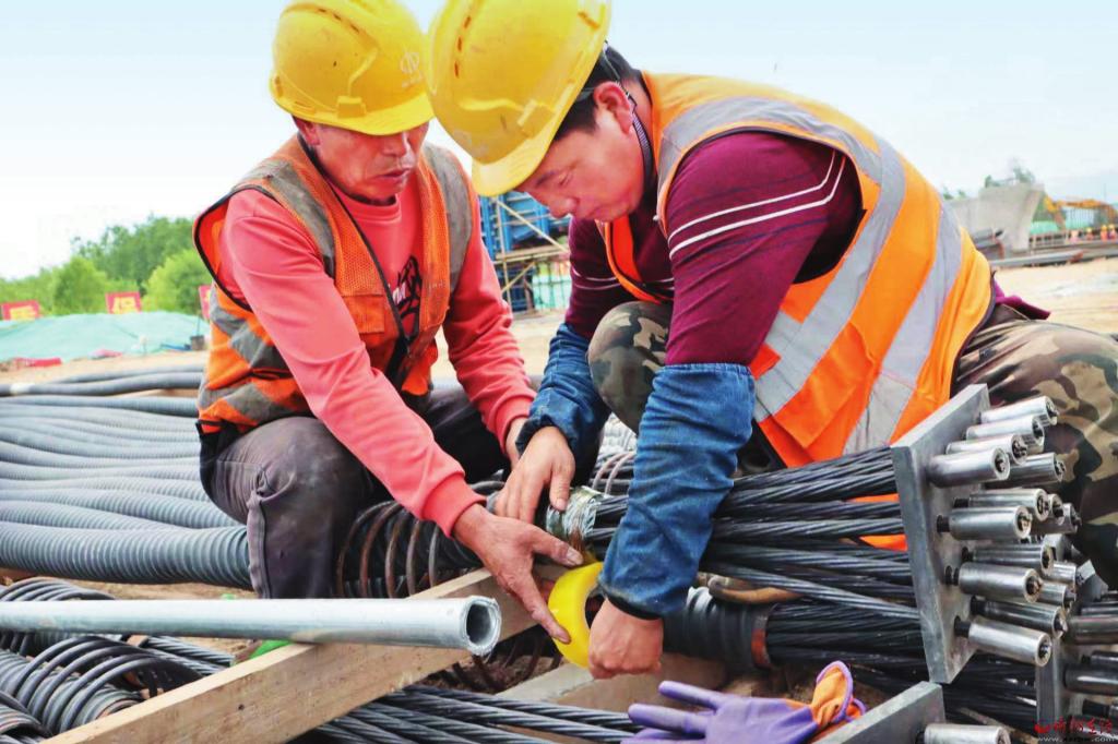 記者近日走進(jìn)南北通道菱形立交橋工地,只見(jiàn)密密匝匝的鋼筋林立如網(wǎng),奮戰(zhàn)在太忻大道一線的工人們頂烈日、冒酷暑、戰(zhàn)高溫,汗流浹背、干勁不減。技術(shù)員仔細(xì)檢查著每一個(gè)接口、鋼筋工熟練準(zhǔn)確排布每一組鋼筋結(jié)構(gòu),井然有序,規(guī)范自如。“南北通道菱形立交橋工程是項(xiàng)目中兩處混凝土澆筑工程之一,目前工程前期準(zhǔn)備工作已接近尾聲,全部澆筑工程任務(wù)將在9月10日前完成。”項(xiàng)目一隊(duì)負(fù)責(zé)人尹耀軍自信滿滿。