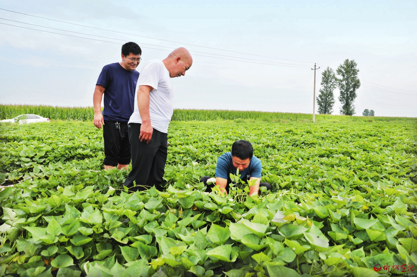 頭戴一頂舊草帽、一雙鞋上沾滿了泥。7月28日,山西農(nóng)業(yè)大學玉米研究所研究員張紅梅頂烈日、冒酷暑,蹲在忻府區(qū)董村鎮(zhèn)劉家山村種薯生產(chǎn)基地,觀察紅薯葉片,判斷種薯生長情況。 同在董村鎮(zhèn)的游邀村,近3000畝紅薯田碧波翻滾,綠葉下面的土壤中,紅薯生長迅速。游邀村村委會主任、種薯大戶蘇全虎正期待著張紅梅培育的頭一批種薯如期收獲,盤算著明年的育苗計劃。 2019年,忻府區(qū)被中國糧食行業(yè)協(xié)會授予“中國甘甜紅薯之鄉(xiāng)”,游邀紅薯功不可沒;2021年,游邀村(紅薯)被農(nóng)業(yè)農(nóng)村部認定為第十一批全國“一村一品”示范村。游邀村民因種薯致富,游邀種薯帶動全區(qū)種薯,游邀紅薯成為全國品牌。 游邀紅薯為啥這樣好?
