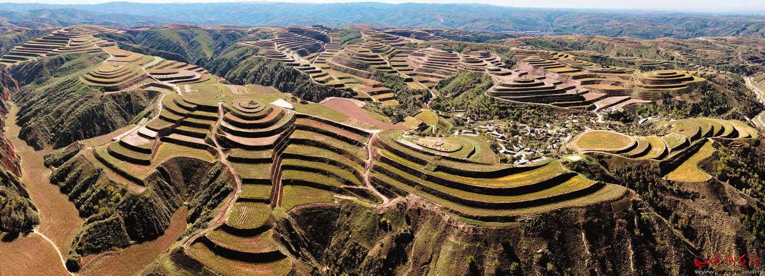 山頂森林戴帽,山腰綠樹纏身,山下阡陌縱橫,田間灌區(qū)流轉(zhuǎn);田間萬物生機(jī)勃勃,到處綠樹成蔭,花香鳥鳴……從水土流失嚴(yán)重、生態(tài)環(huán)境脆弱、生產(chǎn)條件差到荒山荒溝增綠、群眾增收,整溝治理帶來的生態(tài)之變正嬗變?yōu)楹忧蟮氐纳钪儭?/p>