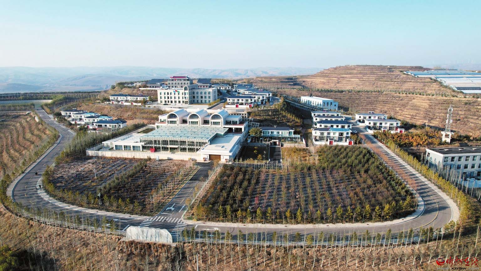 田巨峁村,一個昔日溝深坡陡的小山村,通過大力實施生態(tài)修復(fù)與特色產(chǎn)業(yè)發(fā)展,不僅高標(biāo)準(zhǔn)完成了7.5公里的通道綠化與8000畝的荒山造林,使主色調(diào)由“黃”轉(zhuǎn)“綠”,更在整溝治理后實現(xiàn)了整村搬遷。搬遷后的田巨峁村,依托特色經(jīng)濟(jì)林、京津風(fēng)沙源治理等項目,建成3萬千瓦的光伏發(fā)電站、6000頭種豬養(yǎng)殖場以及千畝紅辣椒示范片,如今已是田疇廣布、年豐歲稔的繁榮景象。