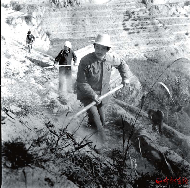 新中國成立初期,溝壑縱橫、土壤貧瘠、災(zāi)害頻繁的河曲縣積貧積弱。全縣水土流失面積1080平方公里,占縣域總面積的81.3%,森林覆蓋面積只有0.3%?!吧焦?、水濁、田瘦、人窮”一度成為制約河曲縣發(fā)展的魔咒,也是當(dāng)?shù)匕傩针y以擺脫的生活夢魘:“平地少陡坡多,盼雨又怕雨,雨不來沒水,雨一來田地卻成了跑土、跑水又跑肥的三跑田,根本沒法生活。”