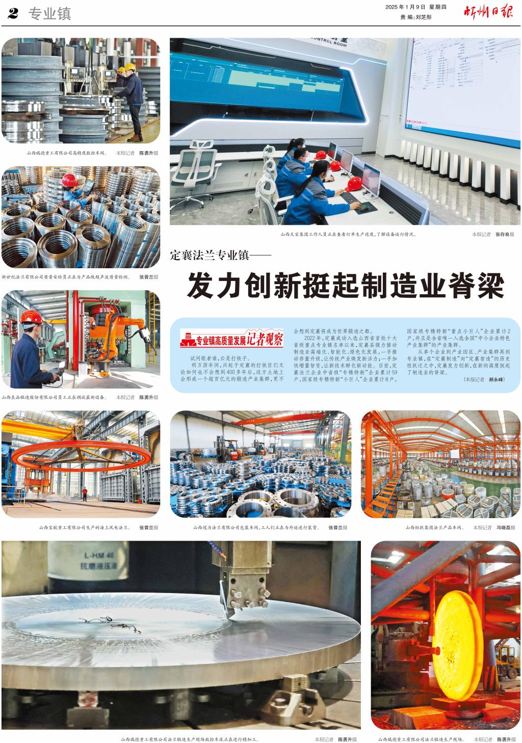 浪涌四方,潮起定襄。定襄,這個以法蘭鍛造聞名全國的晉北工業(yè)小城自2022年成功入選山西省首批十大省級重點(diǎn)專業(yè)鎮(zhèn)以來,就開始了在法蘭產(chǎn)業(yè)賽道上的強(qiáng)勢進(jìn)階。去年以來,定襄縣以黨的二十屆三中全會精神為指引,全面深化改革,用“高”“智”“綠”“服”的理念和行動,進(jìn)一步推進(jìn)法蘭產(chǎn)業(yè)質(zhì)量變革、效率變革、動力變革。