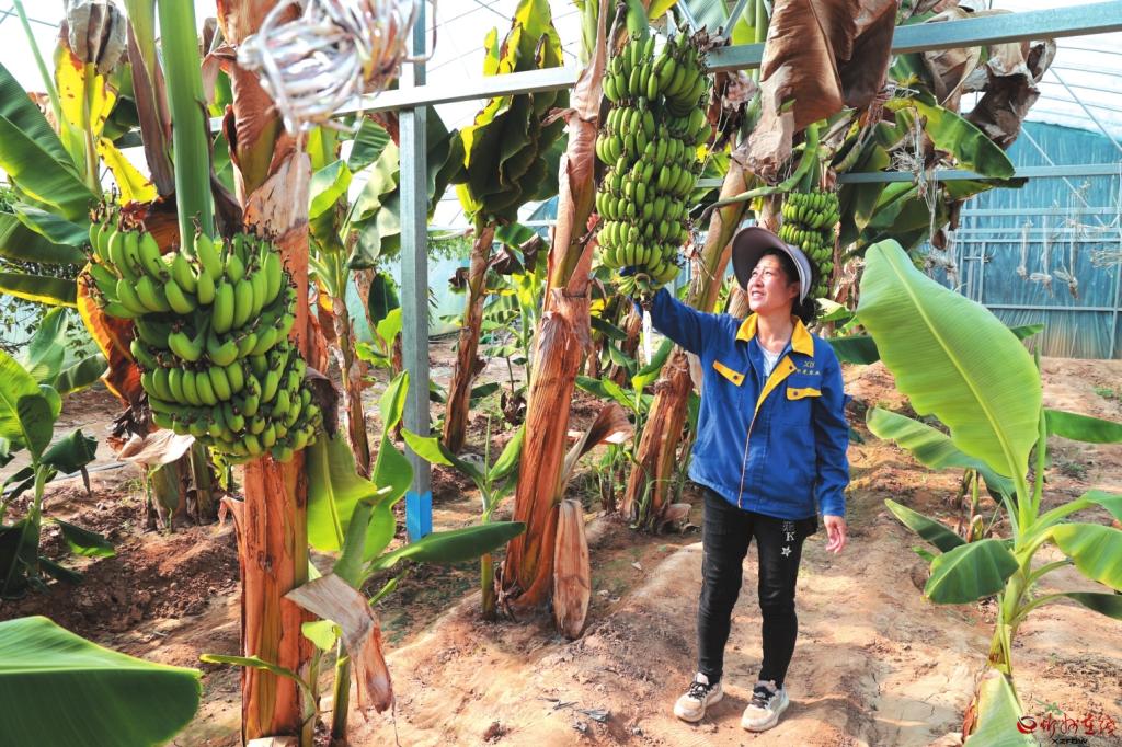 村民對(duì)香蕉樹進(jìn)行管護(hù)。記者張存良攝 7月22日,忻府區(qū)九原生態(tài)農(nóng)業(yè)產(chǎn)業(yè)園呈現(xiàn)罕見景象:百余株香蕉挺拔生長,青綠蕉串沉甸甸掛滿枝頭。這是產(chǎn)業(yè)園負(fù)責(zé)人侯學(xué)光成功引種“中蕉九號(hào)”的喜人成果,標(biāo)志著北方特色種植取得突破性進(jìn)展。 去年,侯學(xué)光在大棚開始試種“中蕉九號(hào)”。“忻府區(qū)的水土環(huán)境竟與蕉苗生長條件高度契合,根系健壯少病害,首年就順利掛果。香蕉未熟時(shí)脆甜清香,成熟后軟糯可口,品質(zhì)不輸南方蕉?!彼d奮地向記者介紹說。通過邀請(qǐng)專家改良土壤、施用自產(chǎn)有機(jī)肥、科學(xué)規(guī)劃間距,曾經(jīng)的邊角地已變身茂密蕉林。 九原街辦事處相關(guān)負(fù)責(zé)人表示,侯學(xué)光香蕉試種成功,是九原街辦事處轄區(qū)“小作物試種、特色化發(fā)展”的生動(dòng)實(shí)踐。近年來,辦事處通過“黨支部+合作社+農(nóng)戶”模式,為種植大戶提供土壤檢測(cè)、技術(shù)培訓(xùn)等全方位支持,帶動(dòng)農(nóng)戶大力發(fā)展火龍果、精品蔬菜等特色種植產(chǎn)業(yè)。 侯學(xué)光計(jì)劃擴(kuò)大種植規(guī)模,并希望與周邊農(nóng)戶分享經(jīng)驗(yàn),讓北方香蕉種植業(yè)真正成為致富一方的新產(chǎn)業(yè)。這片蓬勃生長的香蕉林,為忻府區(qū)發(fā)展壯大特色農(nóng)業(yè)增添了一抹亮色。(記者張志遠(yuǎn)) (責(zé)任編輯:盧相?。?/span> |
