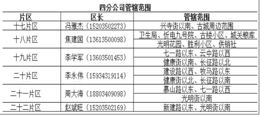 近期,忻州熱力有限公司收到很多用戶上門(mén)反饋,普遍反映客服熱線占線時(shí)間太長(zhǎng),無(wú)法及時(shí)反映供熱情況,導(dǎo)致用戶遇到供熱相關(guān)問(wèn)題或故障無(wú)法及時(shí)反饋。根據(jù)群眾目前遇到的困難,忻州熱力有限公司公布了22個(gè)供熱片區(qū)及負(fù)責(zé)人聯(lián)系方式,以便用戶及時(shí)反饋。