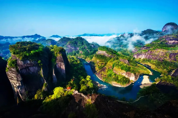 武夷山是三教名山,素有“奇秀甲東南”之美譽,最高峰黃崗山海拔2158米,為東南第一峰,號稱“華東屋脊”。倘登高俯視,云興霞蔚,那九曲溪流、三十六峰、七十二洞、九十九巖的山水奇境,令人目不暇接,嘖嘖稱奇。五臺山是世界佛教名山,享有“清涼圣境”之美譽,最高峰葉斗峰海拔3061米,為華北第一峰,號稱“華北屋脊”。若置身臺巔,東臺能看云海日出,西臺能賞清風(fēng)明月,南臺能觀爛漫山花,北臺能望無垢瑞雪,中臺可攬星辰萬象,一時恍若仙境,不由得馳思遐想。