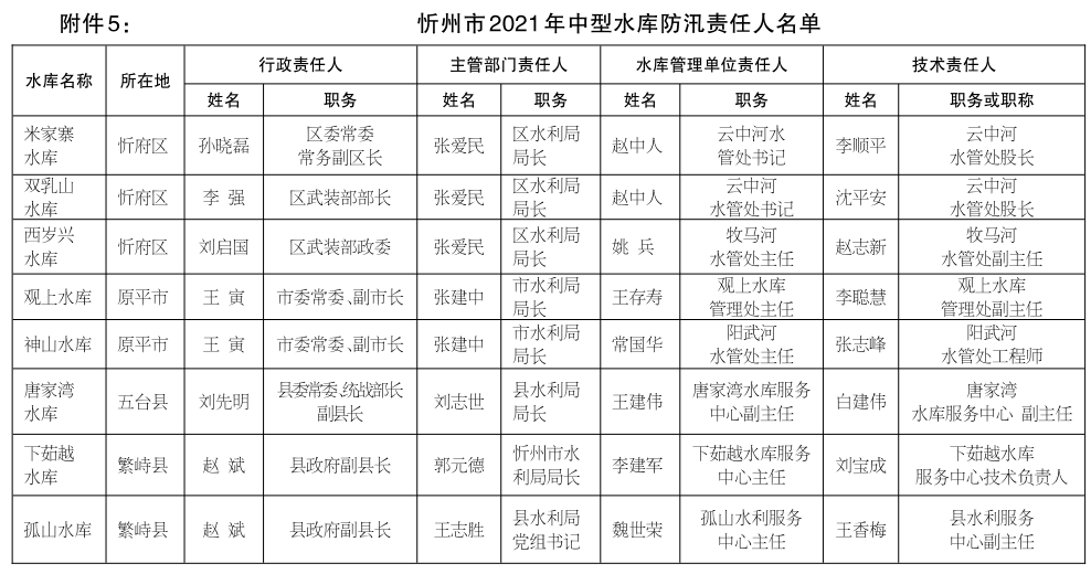 | 忻州市防汛抗旱指揮部關(guān)于2021年全市防洪重點(diǎn)和抗旱責(zé)任人名單的公示 |