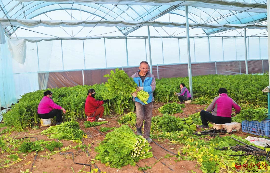 “今年收成咋樣?”馮國紅鉆進(jìn)溢滿芹菜清香的大棚詢問?!耙粋€大棚4畝田,一年四季都生錢。今年賺個10萬元沒問題?!狈N植戶李大爺快人快語。一旁正將蔬菜裝筐的村民郭印蘭也笑著搭話:“謝謝馮書記介紹我到這里來打工,現(xiàn)在我們不出村就能掙到錢了!”