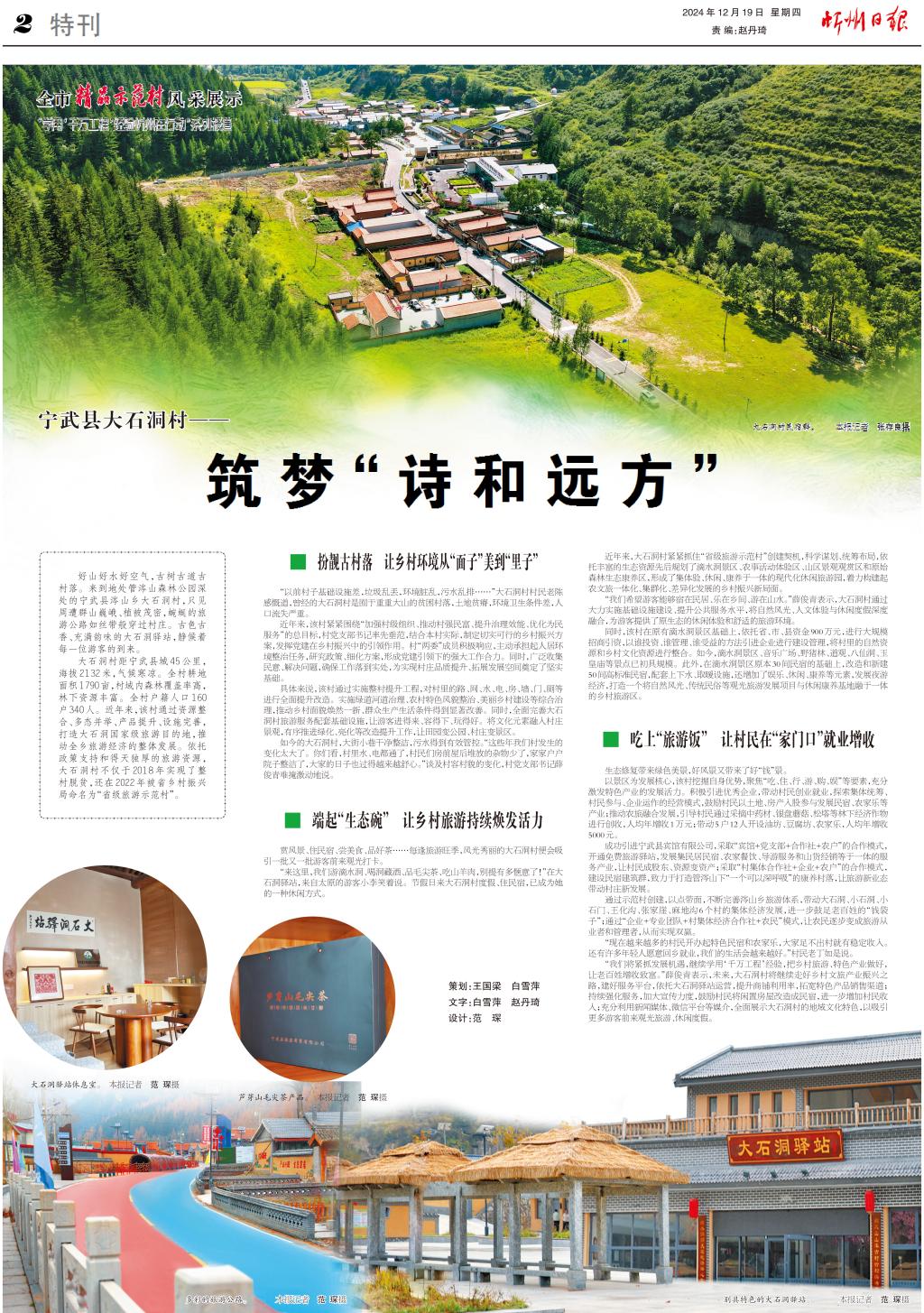 “我們將緊抓發(fā)展機(jī)遇,繼續(xù)學(xué)用‘千萬工程’經(jīng)驗(yàn),把鄉(xiāng)村旅游、特色產(chǎn)業(yè)做好,讓老百姓增收致富。”薛俊青表示,未來,大石洞村將繼續(xù)走好鄉(xiāng)村文旅產(chǎn)業(yè)振興之路,建好服務(wù)平臺(tái),依托大石洞驛站運(yùn)營(yíng),提升商鋪利用率,拓寬特色產(chǎn)品銷售渠道;持續(xù)強(qiáng)化服務(wù),加大宣傳力度,鼓勵(lì)村民將閑置房屋改造成民宿,進(jìn)一步增加村民收入;充分利用新聞媒體、微信平臺(tái)等媒介,全面展示大石洞村的地域文化特色,以吸引更多游客前來觀光旅游、休閑度假。