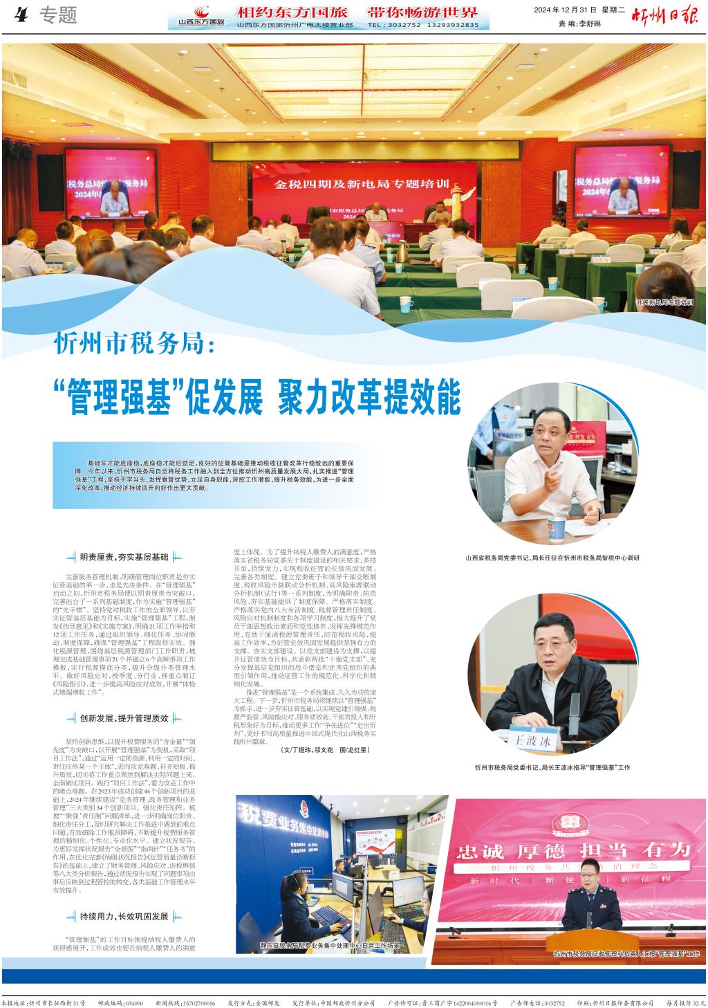 基礎(chǔ)牢才能底座穩(wěn),底座穩(wěn)才能后勁足,良好的征管基礎(chǔ)是推動(dòng)稅收征管改革行穩(wěn)致遠(yuǎn)的重要保障。今年以來,忻州市稅務(wù)局自覺將稅務(wù)工作融入到全方位推動(dòng)忻州高質(zhì)量發(fā)展大局,扎實(shí)推進(jìn)“管理強(qiáng)基”工程,堅(jiān)持干字當(dāng)頭,發(fā)揮垂管優(yōu)勢(shì),立足自身職能,深挖工作潛能,提升稅務(wù)效能,為進(jìn)一步全面深化改革、推動(dòng)經(jīng)濟(jì)持續(xù)回升向好作出更大貢獻(xiàn)。