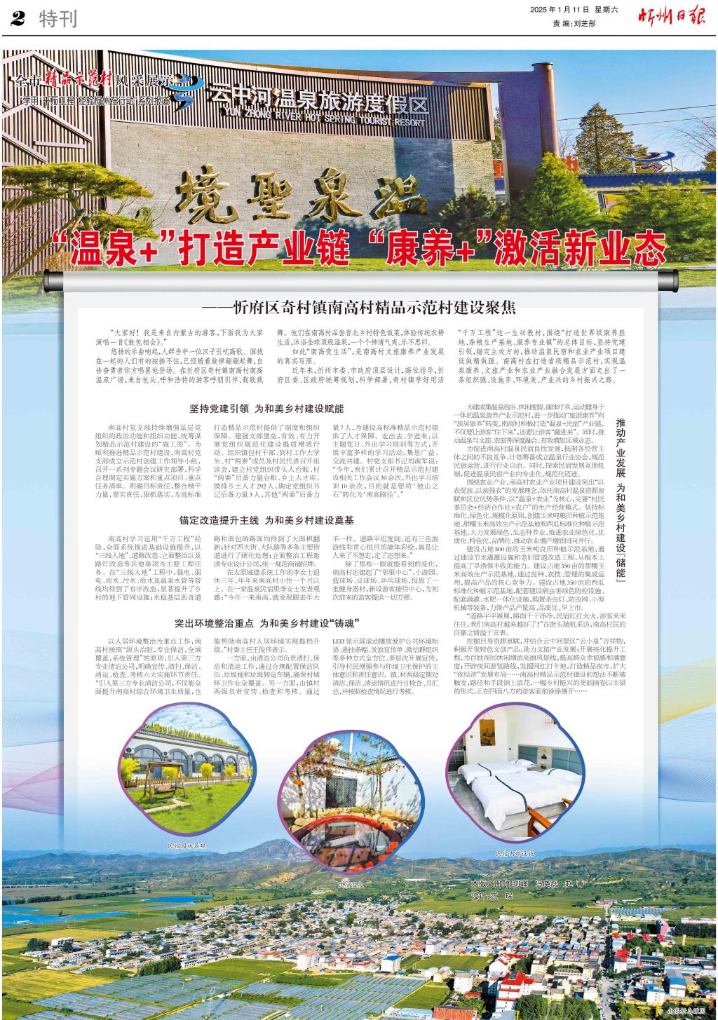 近年來,忻州市委、市政府頂層設(shè)計(jì),高位指導(dǎo),忻府區(qū)委、區(qū)政府統(tǒng)籌規(guī)劃,科學(xué)部署,奇村鎮(zhèn)學(xué)好用活“千萬工程”這一生動(dòng)教材,圍繞“打造世界級康養(yǎng)勝地、雜糧生產(chǎn)基地、康養(yǎng)專業(yè)鎮(zhèn)”的總體目標(biāo),堅(jiān)持黨建引領(lǐng),錨定主攻方向,推動(dòng)溫泉民宿和農(nóng)業(yè)產(chǎn)業(yè)項(xiàng)目建設(shè)做精做強(qiáng)。南高村在打造省級精品示范村,實(shí)現(xiàn)溫泉康養(yǎng)、文旅產(chǎn)業(yè)和農(nóng)業(yè)產(chǎn)業(yè)融合發(fā)展方面走出了一條組織強(qiáng)、設(shè)施齊、環(huán)境美、產(chǎn)業(yè)興的鄉(xiāng)村振興之路。