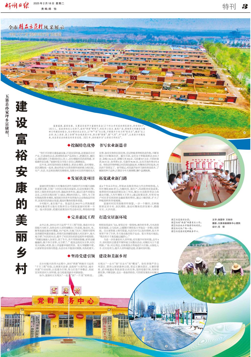 富康富康,富裕安康。五寨縣孫家坪鄉(xiāng)富康村是由12個村合并而成的移民新村,共有834戶、1815人。在政府的關心支持下,在村“兩委”帶領下,村民齊心協(xié)力、集思廣益,將物質文明建設與精神文明建設相結合,充分調動內生動力,以“和”“美”為主題,不斷提升鄉(xiāng)村文明“軟實力”,建設“點上出彩、線上美麗、面上協(xié)調”的全域美麗鄉(xiāng)村,努力增“顏值”、提“氣質”、升“品質”,讓美麗鄉(xiāng)村靚起來,向宜居宜業(yè)的新農村昂首邁進。2021年,該村被評為“山西省文明村莊”。