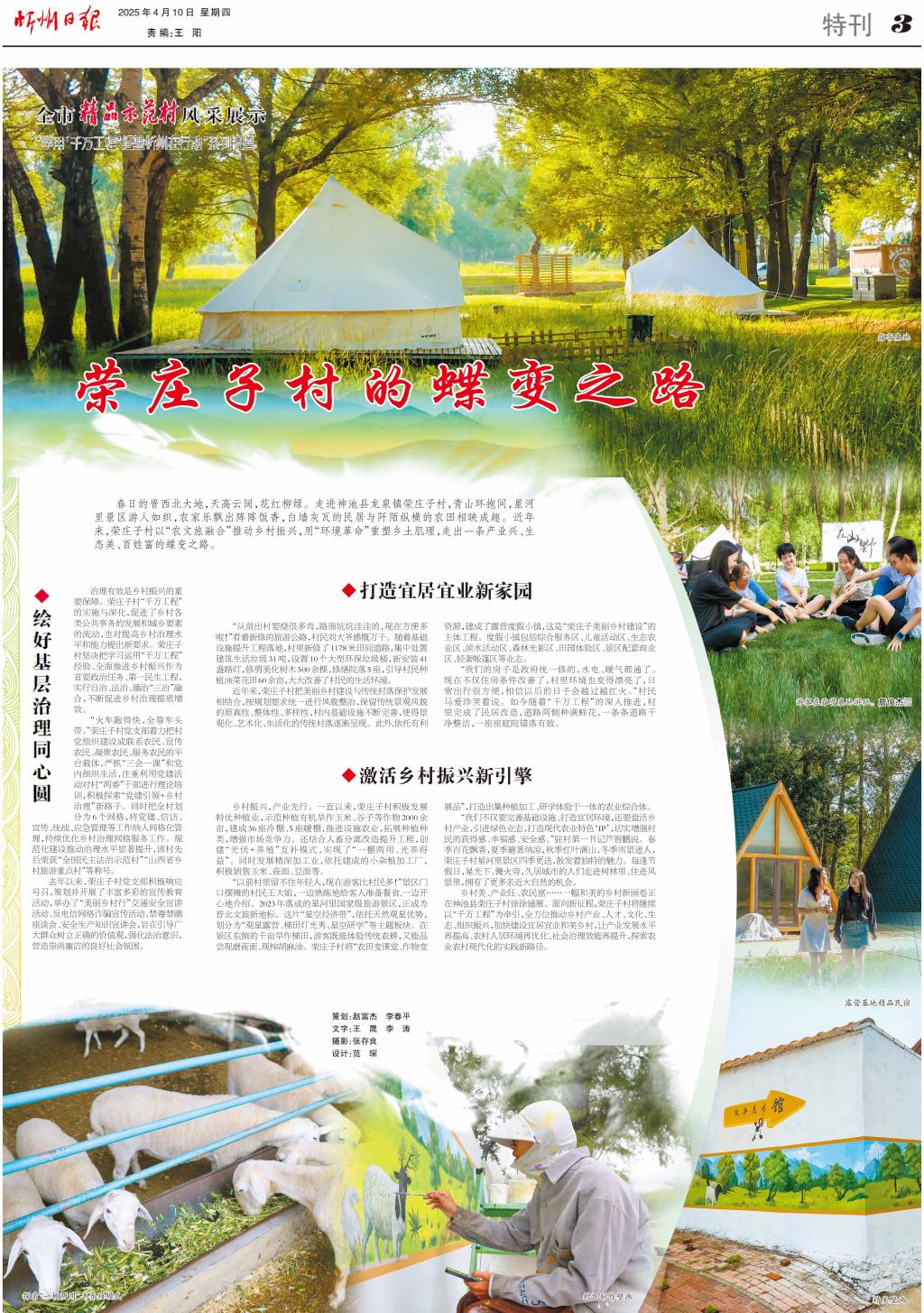 鄉(xiāng)村美、產(chǎn)業(yè)旺、農(nóng)民富……一幅和美的鄉(xiāng)村新畫(huà)卷正在神池縣榮莊子村徐徐鋪展。面向新征程,榮莊子村將繼續(xù)以“千萬(wàn)工程”為牽引,全方位推動(dòng)鄉(xiāng)村產(chǎn)業(yè)、人才、文化、生態(tài)、組織振興,加快建設(shè)宜居宜業(yè)和美鄉(xiāng)村,讓產(chǎn)業(yè)發(fā)展水平再提高、農(nóng)村人居環(huán)境再優(yōu)化、社會(huì)治理效能再提升,探索農(nóng)業(yè)農(nóng)村現(xiàn)代化的實(shí)踐新路徑。