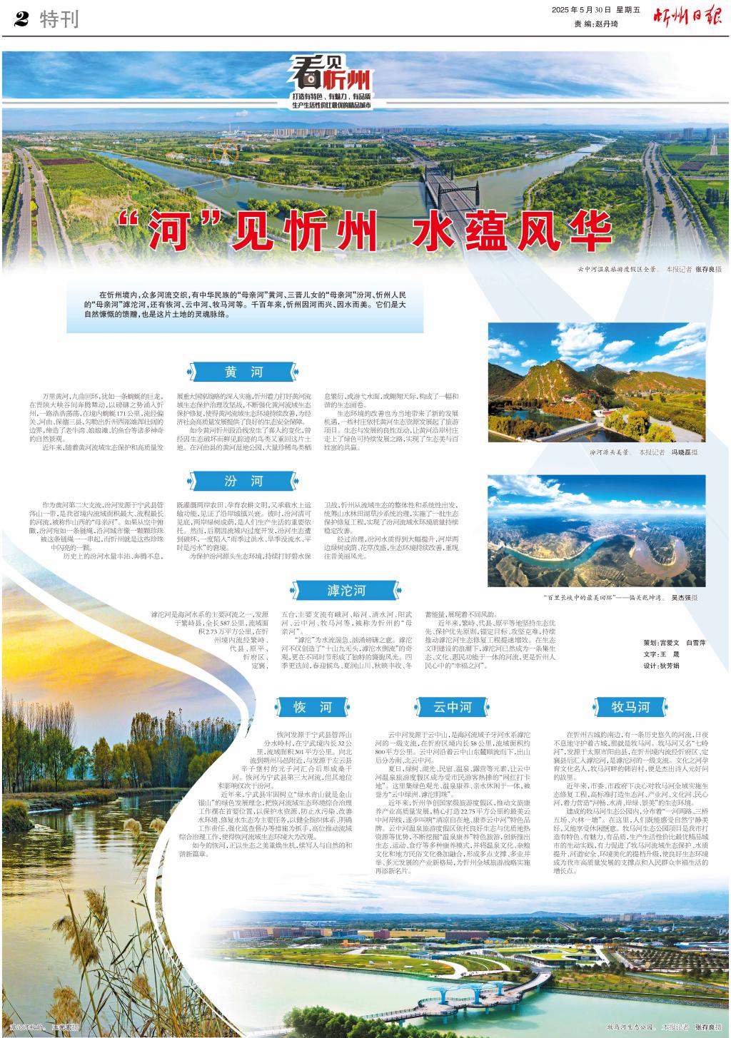 在忻州境內(nèi),眾多河流交織,有中華民族的“母親河”黃河、三晉兒女的“母親河”汾河、忻州人民的“母親河”滹沱河,還有恢河、云中河、牧馬河等。千百年來,忻州因河而興、因水而美。它們是大自然慷慨的饋贈,也是這片土地的靈魂脈絡(luò)。