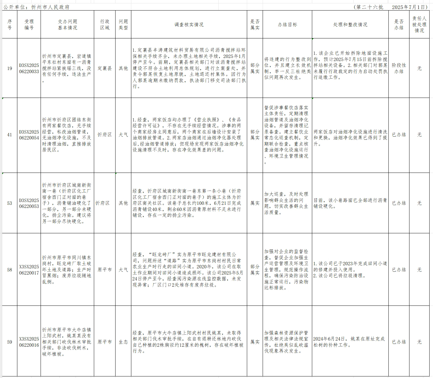 中央生態(tài)環(huán)境保護(hù)督察組群眾信訪舉報(bào)轉(zhuǎn)辦和邊督邊改公開情況一覽表(第二十六批)