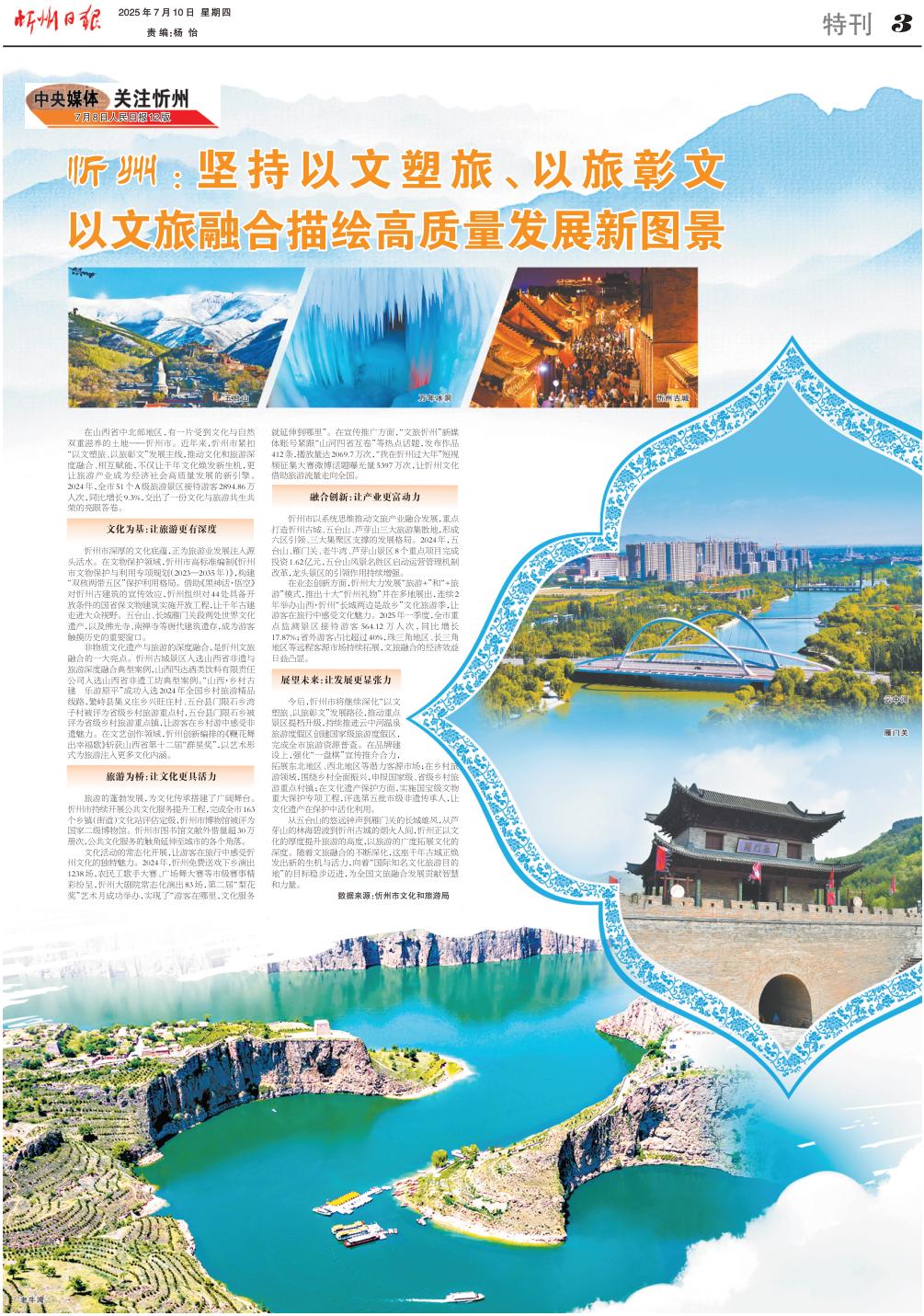 在山西省中北部地區(qū),有一片受到文化與自然雙重滋養(yǎng)的土地——忻州市。近年來,忻州市緊扣“以文塑旅、以旅彰文”發(fā)展主線,推動文化和旅游深度融合、相互賦能,不僅讓千年文化煥發(fā)新生機,更讓旅游產業(yè)成為經(jīng)濟社會高質量發(fā)展的新引擎。2024年,全市51個A級旅游景區(qū)接待游客2894.86萬人次,同比增長9.3%,交出了一份文化與旅游共生共榮的亮眼答卷。
