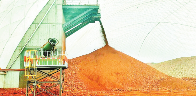 4月15日,4號氣膜倉內(nèi)正在進(jìn)行自動化礦石倒運作業(yè),同步開啟霧炮機降塵。 高舒軍攝