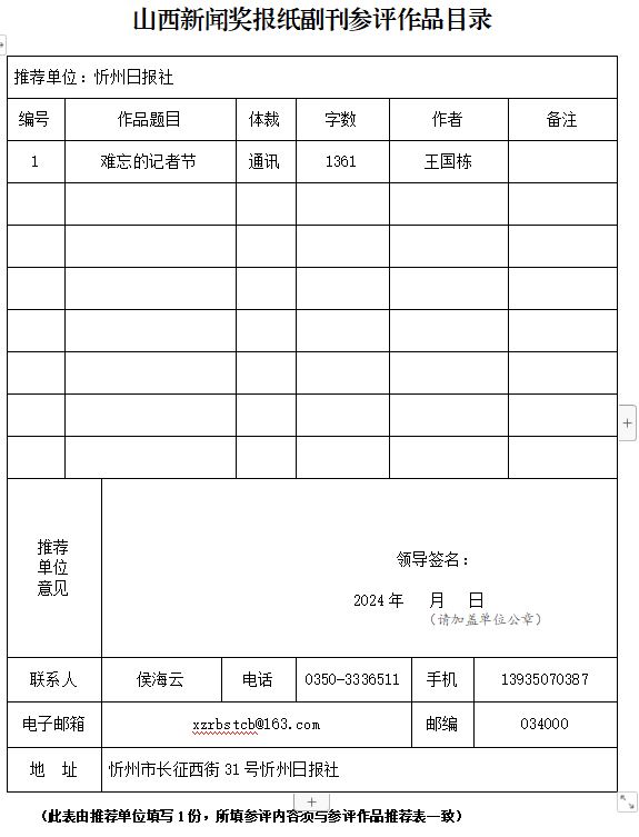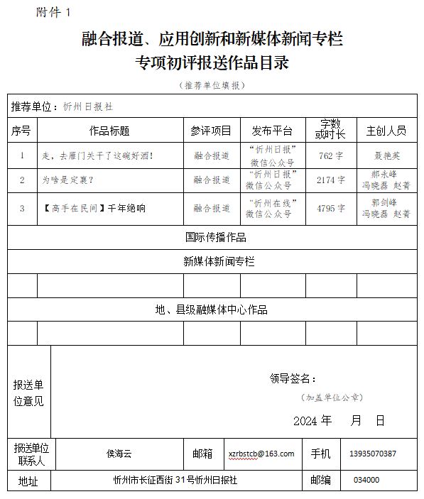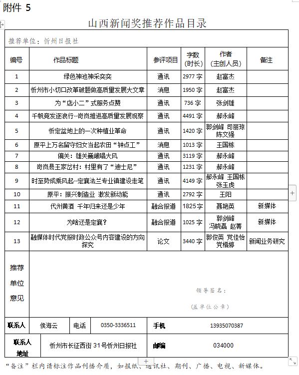 經(jīng)忻州日報(bào)社編委會(huì)研究決定,以下作品擬推薦申評第33屆山西新聞獎(jiǎng),現(xiàn)予以公示。有反對意見者,請將反對意見書面報(bào)至統(tǒng)計(jì)考核部。