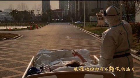 “那一天,我推著一輛命運(yùn)的車,車輪喘息著挪向檢查CT的走廊。 一位老人顫抖的手,艱難地指向并不黯淡的遠(yuǎn)方。 這是個(gè)寧?kù)o的江城之春,康復(fù)的好消息苦苦等候在小路的兩旁。 正在與瘟神搏斗的武漢大學(xué)人民醫(yī)院東院,時(shí)時(shí)刻刻顯示著格外的緊張。 忽然,我看見前方,是誰(shuí)用寬寬的肩膀, 終于扛來了一輪這么有力的夕陽(yáng)? 好多天不見了! 那么燦爛,那么安詳,比任何時(shí)候都來得明亮!”