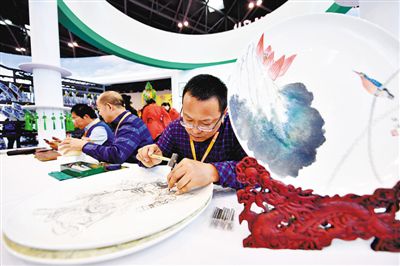 第四屆山西文化產(chǎn)業(yè)博覽交易會(huì)上的刻瓷工藝展示。新華社發(fā)