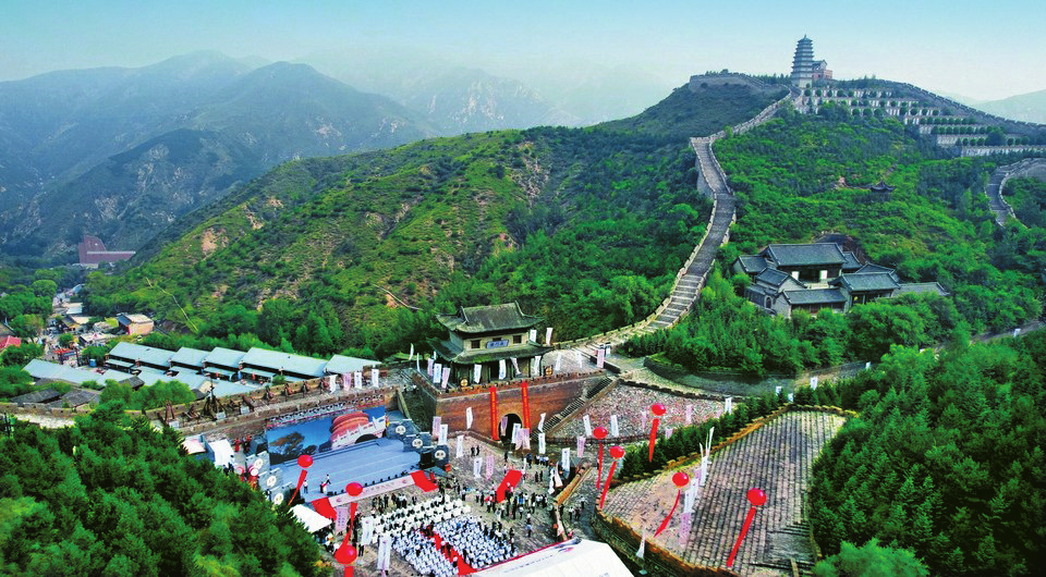 夏日的雁門關(guān)山花爛漫,翠林如海,行車穿梭在蜿蜒曲折的山路上,遠(yuǎn)遠(yuǎn)地就能望見雄踞在崇山峻嶺之間的雁門關(guān)關(guān)樓,連同兩側(cè)屹立對(duì)峙的山峰,如同雄鷹展翼,蔚為壯觀。