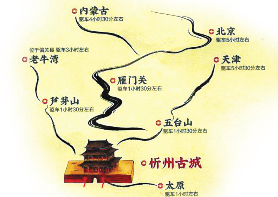 來到這里,你可以站在溝壑縱橫、梁峁起伏的黃土高原,欣賞懸崖峭立、水石相激的晉陜峽谷,也可以在古木參天、濃蔭蔽日的森林公園里散步,在百草茂盛、一望無垠的高山草甸上仰望星空。你可以游覽世界文化景觀遺產(chǎn)、佛教名山五臺(tái)山,也可以領(lǐng)略秀容、岢嵐、寧化、代州4座悠遠(yuǎn)古城的各有千秋,登攀三關(guān)營堡、歷朝歷代的邊塞長城。你可以在偏關(guān)老牛灣古渡、河曲西口古渡搖櫓渡河,回想晉商的輝煌,也可以身臨夜襲陽明堡飛機(jī)場遺址,重溫榮耀,感受歷史的震撼……