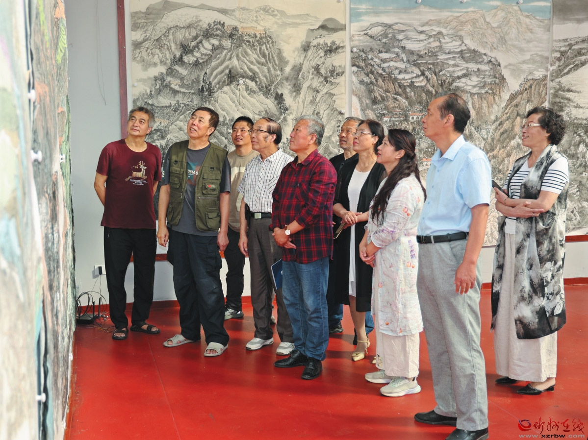趙家溝 有人說趙家溝是隱藏在黃土高原上的一處宛如世外桃源的仙境,有人說趙家溝綿延的山巒、深沉的黃土地、古樸的窯洞本身就是一幅雄奇壯美的水墨畫,有人說趙家溝寫生基地去年甫一成立就已成為全國各地畫家爭相前往寫生的打卡地。 耳聽為虛,眼見為實(shí)。 8月3日,記者一行頂風(fēng)冒雨,從忻州驅(qū)車前往距離河曲縣城南尚有80余公里、平均海拔近1600米的趙家溝,對寫生基地進(jìn)行探訪。經(jīng)過3個(gè)多小時(shí)的行程到達(dá)目的地時(shí),風(fēng)雨驟停,云淡風(fēng)輕。站在位于山頂?shù)内w家溝俯瞰四方,只見不遠(yuǎn)處的翠峰山松柏蒼翠,延綿不斷的綠色山巒起起伏伏、蔚為壯觀,一道道梯田列陣在或高或低的山峁溝壑間,一群群小鳥歡唱著掠過古樸的窯洞,雨后清新的空氣沁人心脾——好一幅雨后山居圖。 每一次來,都有不一樣的感受與收獲 在趙家溝寫生基地大院里,是古老的石碾、整齊的窯洞、兼具書畫創(chuàng)作與展示功能的翠峰閣;大門外,是遠(yuǎn)離都市喧囂的黃土高原絕美風(fēng)光。記者到來時(shí),由中國青綠山水畫院組織的國展創(chuàng)作培訓(xùn)活動(dòng)已接近尾聲。 中國青綠山水畫院院長顧大明向記者介紹說,這次公益性培訓(xùn)活動(dòng)從7月10日開始至8月5日結(jié)束,為期25天,前10天為寫生期、后15天為創(chuàng)作期,來自全國各地的34名畫家學(xué)員參加了培訓(xùn)。負(fù)責(zé)輔導(dǎo)的老師都是畫院的院長、副院長,同時(shí)均是中國美術(shù)家協(xié)會會員,有的還是大學(xué)教授、專業(yè)畫家、軍旅畫家。本次培訓(xùn)以趙家溝黃土高原地貌作為寫生與創(chuàng)作的題材,學(xué)員后期創(chuàng)作的山水畫作品都是2.4米×2米的大幅作品,表現(xiàn)手法各異,均達(dá)到了國展水平。最終有7名學(xué)員被評為優(yōu)秀學(xué)員,并被聘為中國青綠山水畫院畫家。