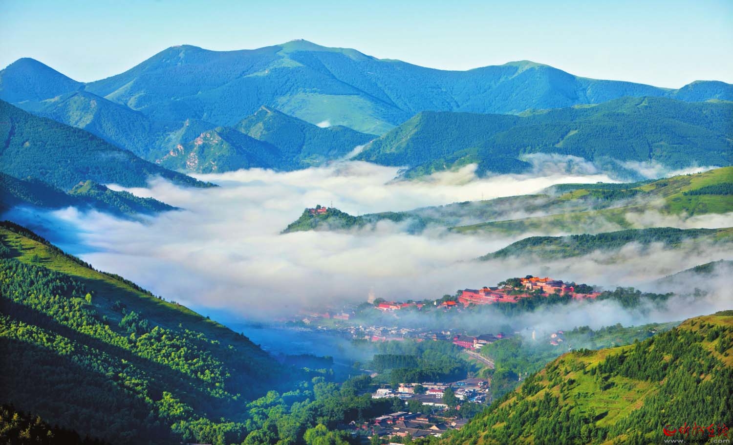 除了以上所說(shuō)的一些地理地貌外,五臺(tái)山清涼的氣候以及豐富的植被也吸引了眾多佛教徒,使五臺(tái)山成為清修的好地方。晉譯《華嚴(yán)經(jīng)·菩薩住處品》記載:“東北有菩薩住處,名清涼山?,F(xiàn)有菩薩文殊師利與一萬(wàn)菩薩常住說(shuō)法?!逼鋵?shí)這一說(shuō)法很模糊,佛教追求無(wú)欲無(wú)求,自然需要一個(gè)清心寡欲的環(huán)境,因此“清涼山”可能是一個(gè)虛指。但五臺(tái)山作為華北屋脊,最高海拔達(dá)3061米,比周?chē)狞S土高原、華北平原都要涼爽許多,長(zhǎng)途跋涉的僧人突然來(lái)到如此清涼的地方,很容易就把五臺(tái)山當(dāng)成一直向往的“清涼山”。于是,在五臺(tái)山正式成為文殊道場(chǎng)后,自然而然也擁有了一個(gè)別名——“清涼山”。