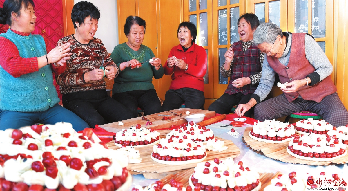“臘八節(jié)”拉開了過年的序幕,臘月二十三,又稱“小年”。臨近年根,置辦年貨、洗洗涮涮,人們掃家除塵盡可能提早在臘月二十三前完成。為了飽享年節(jié)的輕松美好,在忻州民間有正月里不蒸灶的說法,人們要將年后一整個正月內(nèi)的所有主食集中在臘月加工制熟。過去,由于忻州小麥種植有限,唯獨過年才有口福享受幾頓白面食品,所以面食蒸灶是一件必不可少的事情。饃饃、花糕、棗山、錢龍,有女兒的還要有毛籃兒。上午蒸灶,下午搟豆面,這似乎也成為一種慣例。捏過花糕棗山的大面案依然還在炕邊擺著,把豆面和成硬硬的,搟得薄如紙張,折成幾折,切成一指寬左右的寬條,這是專為大年初一中午準(zhǔn)備的“寬心面”。