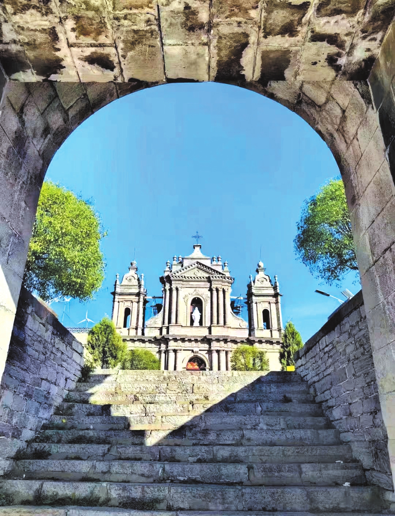 這座教堂始建于18世紀70年代,占地達三萬平方米。1897年—1898年間,意大利籍主教艾士杰與建筑師李有剛運用當?shù)仄胀ùu石,奇跡般建造出一座異國風情的高山城堡。教堂主體建筑簡練垂直,頂部裝飾方圓相間,數(shù)不清的十字架直指云天。內部則完全是西式的雕像、壁畫和教務活動,讓人恍如置身歐洲。