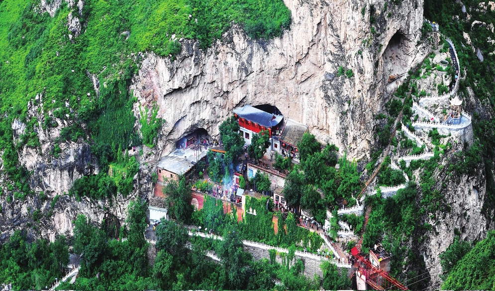 明代《忻州志》記載:“仙人洞,在福田寺左,相傳通平山縣,產(chǎn)瑪瑙。”這段記載揭示了另一個秘密——洞穴可能通往河北平山縣。1992年開發(fā)時探明深度已達2000余米,但實際長度仍是未解之謎。洞內恒溫在8-11℃之間,形成“盛夏涼風習習,寒冬溫暖如春”的獨特微氣候。當游客沿著依巖而建的“天梯”或乘坐索道抵達洞口時,便踏入了一個四季恒常的時空膠囊。