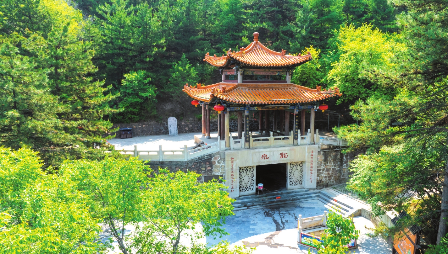 山有水而媚,土得水而沃。從大雄寶殿出來,沿著西門旁一條小道不遠處,就是那片號稱“天柱松濤”的松林了。只見樹干筆直,枝條蒼勁,直指云霄,林間松脂飄香,氣息悠然。人還在松林中流連尋芳,遠遠就能聽到聞名已久的“天柱龍泉”在流淌。龍泉位于景區(qū)廟群西南的龍泉閣,作為“靜樂舊八景”之首的“天柱龍泉”,又名“犬舐泉”,《魏書》載:“爾朱榮高祖羽健居北秀容川。會有狗舐地,因而穿之,得甘泉,故名。”相傳泉中出神龍,故名龍泉。高山出泉是為奇觀,泉水清澈見底,旱不涸、澇不盈,夏飲清神,冬飲沁心。有“天柱圣境啟心智,龍泉奇觀令神怡”之頌。此泉水富含多種礦物質(zhì)和微量元素,是地地道道的“天然級礦泉水”。近幾年上山鍛煉的居民很多,人們上山時自帶裝水工具,攜泉水以做飯和飲用,期盼著龍泉水能給人帶來健康和好運。站在龍泉邊,總能感受到一陣陣濕潤的水氣撲面而來,甚至像風一樣輕繞著周身,使人置身于自然美景中不愿離開,連呼吸也變得無比暢快起來。